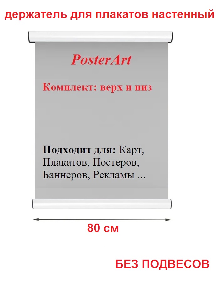 В комплекте два профиля с торцевыми пластиковыми заглушками без подвесов. Верхний профиль выполняет роль плотного зажима. Выдерживает вес полотна до 3-3,5кг. Нижний служит утяжелителем. Смена постера в такой конструкции занимает меньше минуты. Держатель хорошо выдерживает внешние воздействия и идеально подходит для многократного применения.