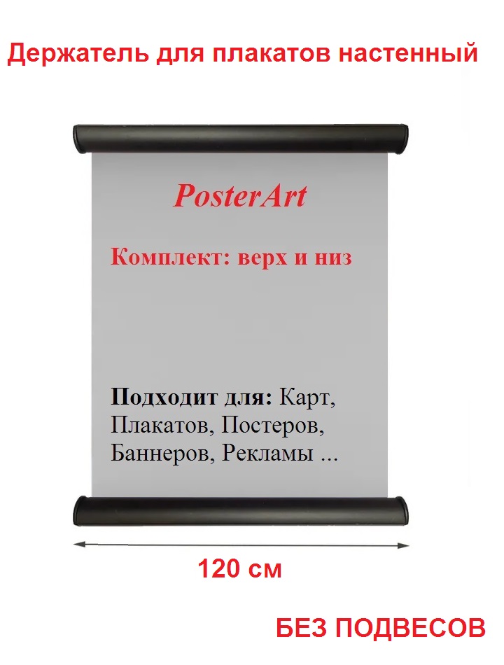 В комплекте два профиля с торцевыми пластиковыми заглушками без подвесов. Верхний профиль выполняет роль плотного зажима. Выдерживает вес полотна до 3-3,5кг. Нижний служит утяжелителем. Смена постера в такой конструкции занимает меньше минуты. Держатель хорошо выдерживает внешние воздействия и идеально подходит для многократного применения.