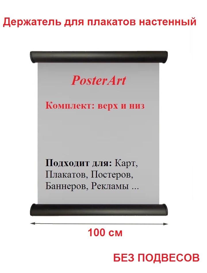 В комплекте два профиля с торцевыми пластиковыми заглушками без подвесов. Верхний профиль выполняет роль плотного зажима. Выдерживает вес полотна до 3-3,5кг. Нижний служит утяжелителем. Смена постера в такой конструкции занимает меньше минуты. Держатель хорошо выдерживает внешние воздействия и идеально подходит для многократного применения.
