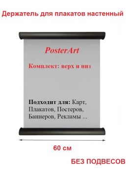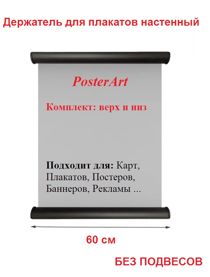 В комплекте два профиля с торцевыми пластиковыми заглушками без подвесов. Верхний профиль выполняет роль плотного зажима. Выдерживает вес полотна до 3-3,5кг. Нижний служит утяжелителем. Смена постера в такой конструкции занимает меньше минуты. Держатель хорошо выдерживает внешние воздействия и идеально подходит для многократного применения.